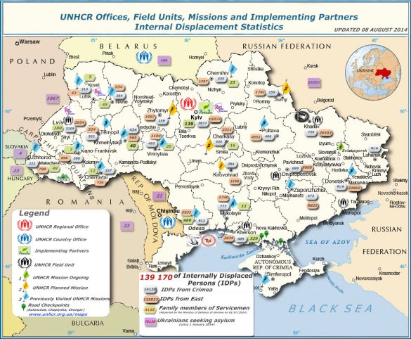 Відтак, починаючи з 1 січня з Криму виїхали 14 138 людей, з Донбасу – 125 032, а притулку в інших країн попросили 70 138 українців. Загалом свої домівки залишили 139 170 українців.