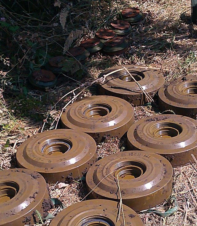 Серед виявлених та знешкоджених боєприпасів в Луганській та Донецькій областях - 5 підготовлених до використання протитанкових гранат, 79 мін-розтяжок з гранатами, 205 розтяжок з сигнальними ракетами, 15 розтяжок з саморобними пристроями, 6 мін з дистанційним керуванням направленої дії та інші вибухонебезпечні предмети.