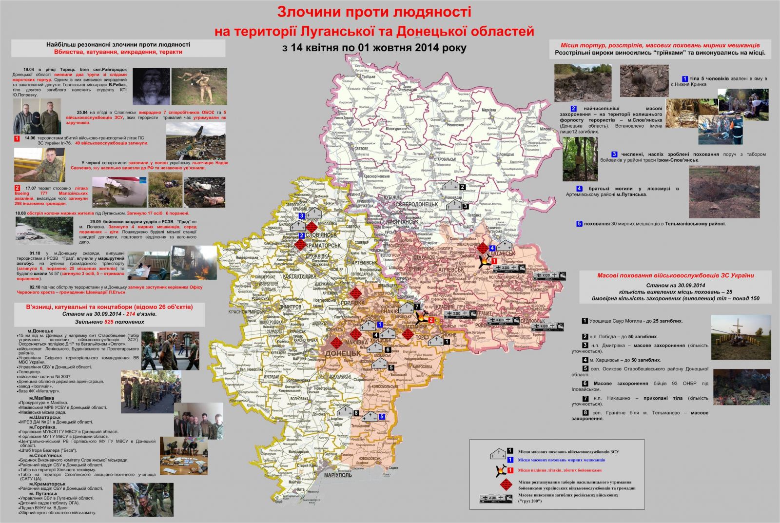 В основі цієї карти інформація, яку Службі безпеки України цілодобово повідомляють очевидці злочинів на «гарячу лінію» СБУ. Ці свідчення повністю підтверджуються об’єктивними даними космічних знімків, перехопленими телефонними переговорами бойовиків, матеріалами контррозвідки СБУ, зізнаннями затриманих та заарештованих за рішеннями українських судів злочинців.