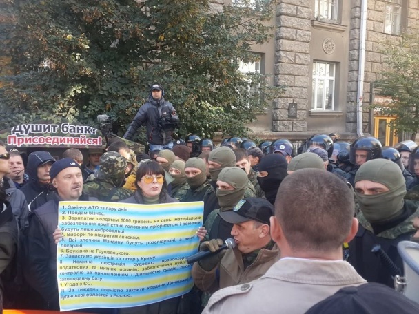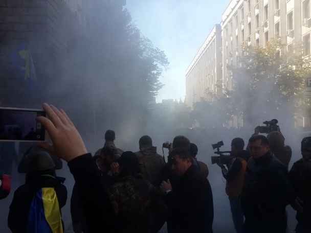 Автомайдан та самооборонцівці у балаклавах намагалися пройти крізь оточення правоохоронців та підняли шлагбаум біля будівлі. Мітингувальників відтіснили бійці батальйону «Київ-1», пише видання «Ліга.Новости».