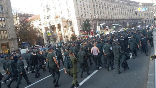 Повідомляється, що сьогодні у Києві колона солдат з АТО рушила Хрещатиком до АП,.