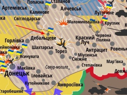 Мапа АТО: Найбільш напружена ситуація лишається біля Дебальцевого