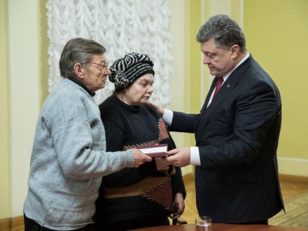 «Ваш син дійсно герой. Він віддав найцінніше — своє життя. І віддав його не тільки за свободу України, але і за те, щоб була демократія і свобода в усій Європі і в усьому світі», — зазначив Порошенко.