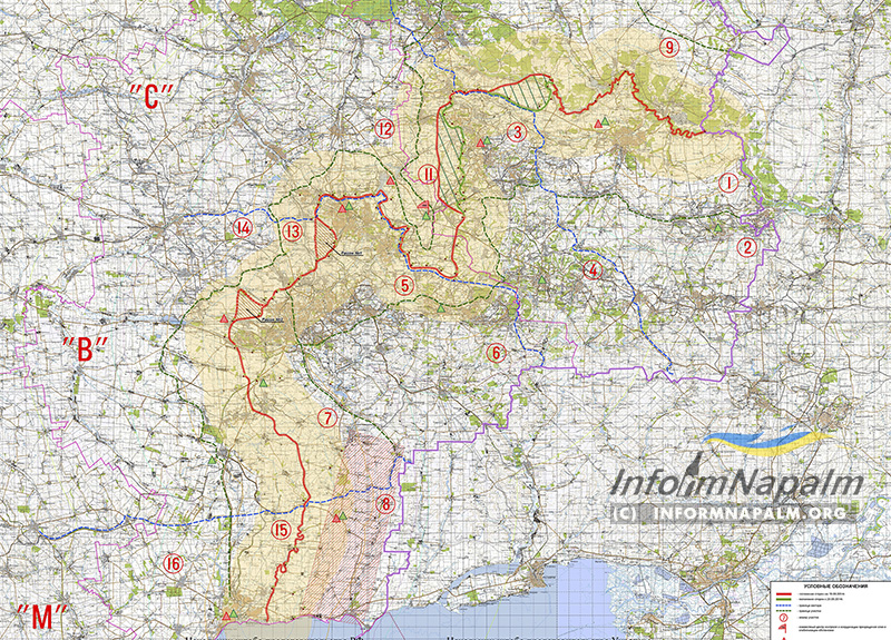 У Мережі опублікували точну мапу розмежування сил в зоні проведення АТО на Донбасі. Оригінал електронної версії карти був оприлюднений на сайті видання informnapalm.org.