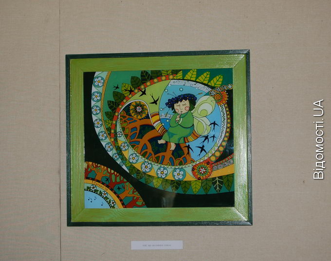 Представлені картини — це і графіка на вохристому тлі, й розпис скла, який обожнює сама авторка.