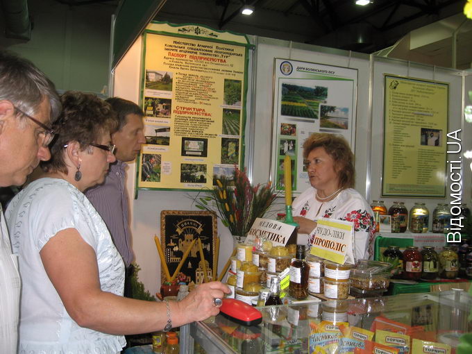 На фото: відвідувачі цікавляться волинськими бджолопродуктами
