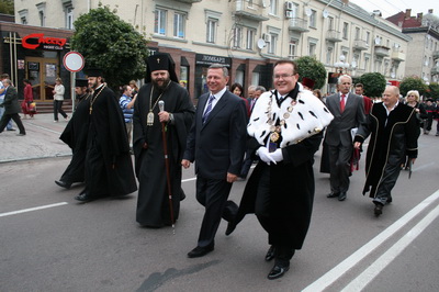 Міський голова Микола Романюк, перший заступник міського голови Святослав Кравчук разом із представниками ВНУ, першокурсниками, їхніми батьками, духовенством та громадськістю взяли участь в урочистій ході містом, під час якої було покладено квіти до пам’ятників Тарасу Шевченку, Лесі Українці та Михайлу Грушевському.