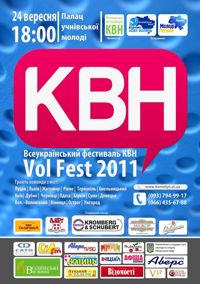 Вже стає доброю традицією в вересні, в Луцьку, проводити відбірковий фестиваль Всеукраїнської ліги КВН «Волинь», який носить назву «Vol Fest 2011».