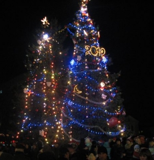 Опісля цього, відбулося урочисте запалення новорічних ялинок. У Луцьку склалася добра традиція не рубати ялинку, аби поставити її у центрі міста, а наряджати дерева, які ростуть на Театральному майдані.