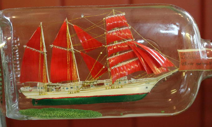 Мініатюрні вітрильники у пляшках можна побачити у Волинському краєзнавчому музеї