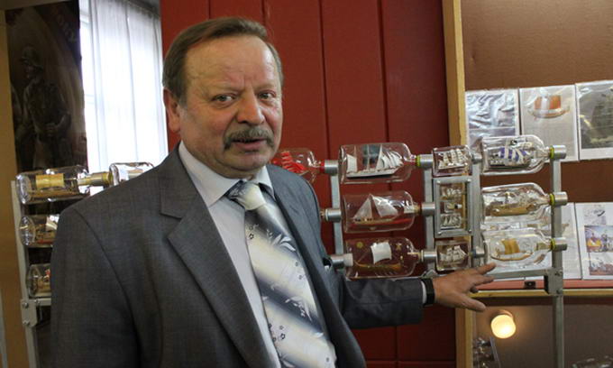 Схожі моделі Володимир Пантелеймонович виготовляє вже 30 років. А захоплення морем і вітрильниками зародилось під час проходження військової служби на Балтиці, де вперше і було помічено його здібності до різного роду художніх виробів. Ще одне захоплення майстра – шахи. Він неодноразовий призер шахових конкурсів, про що свідчать численні грамоти представлені на виставці.