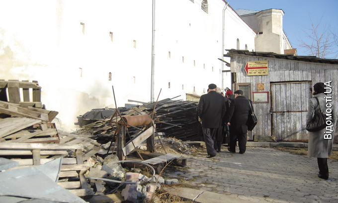 Наступним об’єктом, який оглянули представники влади, стало Луцьке підземелля, що під кафедральним костелом святих Петра і Павла. Дворик, де розміщений вхід у підземелля, більше скидається на склад брухту. Туристів лякає якась незрозуміла і схожа на сарай споруда, залишки будматеріалів та інший непотріб.