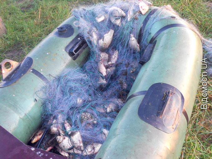 Інспектор Ільчук розповів, що у човні було виявлено браконьєрську сітку довжиною 600 метрів та 382 голови срібного карася.