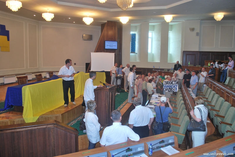 Головною подією сьогоднішнього засідання сесії обласної ради стало обговорення мовного питання. Сесія обіцяла бути напруженою. По-перше, під стінами обласної ради ще до початку сесії зібрався натовп мітингувальників які вимагали захистити мову.