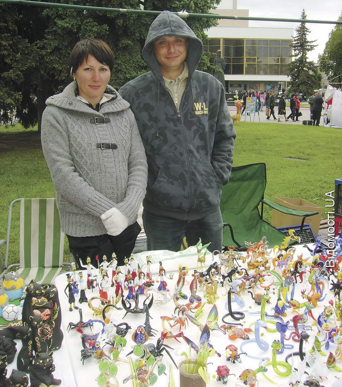 На великі свята, під час різноманітних фестивалів Театральний майдан Луцька та вулиця Лесі Українки перетворюються у своєрідні містечка майстрів, де панує особлива творча атмосфера. Тут лучани та гості міста мають можливість насолодитися виробами мистецтва, щось собі придбати або замовити. Саме під час одного з таких заходів зустрілися з львівськими умільцями Валерієм та Ольгою Горшковими, які привезли на Волинь досить незвичні для нас вироби — скульптури, створені з розплавленого скла. Асортимент їх найрізноманітніший — яскраві вишукані фігурки у вигляді людей, звірів, казкових персонажів, символи Нового року та інше.