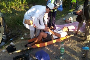 В легковому автомобілі «Mitsubishi Grandis» перебувала родина (3 дорослих та 3 дітей). За попередніми даними, дівчинка, 7-ми місяців, знаходиться на обстеженні у Первомайській центральній міській багатопрофільній лікарні. Друга дитина — 6 років, доставлена до реанімаційного відділення цієї ж лікарні з попереднім діагнозом: закрита черепно-мозкова травма, струс головного мозку, рвана рана грудної клітки. Третя дитина, хлопчик 17 років, доставлений до хірургічного відділення тієї ж лікарні з попереднім діагнозом: струс головного мозку, компресійний перелом шийного хребта, закрита травма живота.