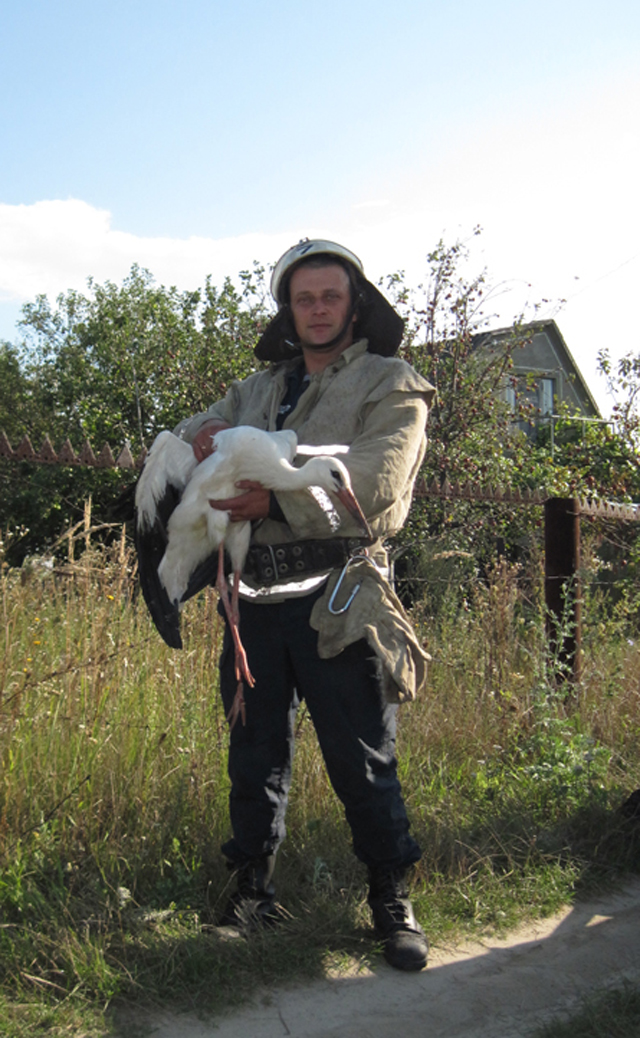 Працівники МНС врятували лелеку, який потрапив у «пастку»