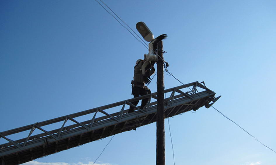 20 серпня близько 9 години ранку надійшло повідомлення про те, що на території дачного кооперативу «Марс» у Володимир-Волинському районі на електричній опорі між проводами знаходиться безпорадний птах, який потребує допомоги.