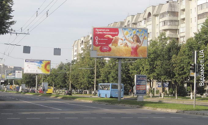 — Якщо взяти до уваги статистику по інших містах України, наприклад, Івано-Франківську, Тернополі чи Одесі, то у порівнянні з Луцьком в цих обласних центрах у два, а в Одесі — в три рази більші ціни на зовнішню рекламу. В Одесі платять 1237 гривень, в Івано-Франківську — 734, у Тернополі — 729, у Житомирі — 600 гривень. За розміщення двостороннього наземного щита розміром три на шість метрів у Луцьку беруть у середньому 344 гривні щомісячної плати. Через це програють громада та міський бюджет, оскільки не відбувається наповнення міської казни, — повідав чиновник.