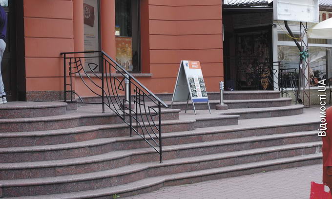Аби відповісти на ці запитання, ми вирішили пройтися кількома вулицями облцентру та подивитися, скільки закладів не полінувались обладнати пандусами вхід. Подорож розпочали з центральної частини міста. Так, на вулиці Сенаторки Левчанівської не побачили жодного пандуса, а отже, недоступними для інвалідів тут лишились магазини, стоматологічні кабінети, перукарні, банки. Далі йдемо вулицею Лесі Українки. Тут натрапили аж на три пандуси. Отже, пристосованими для інвалідів-візочників тут є міні-маркет, нове кафе-бістро та один із нещодавно збудованих торгово-офісних центрів. Натомість потрапити в магазини одягу чи офіси банків людині на візочку практично неможливо: туди ведуть або надто круті сходи, або й величезний каскад сходинок. Попри те, що на такі архітектурні конструкції використали чимало площі, місця для пандуса чомусь не знайшлось.