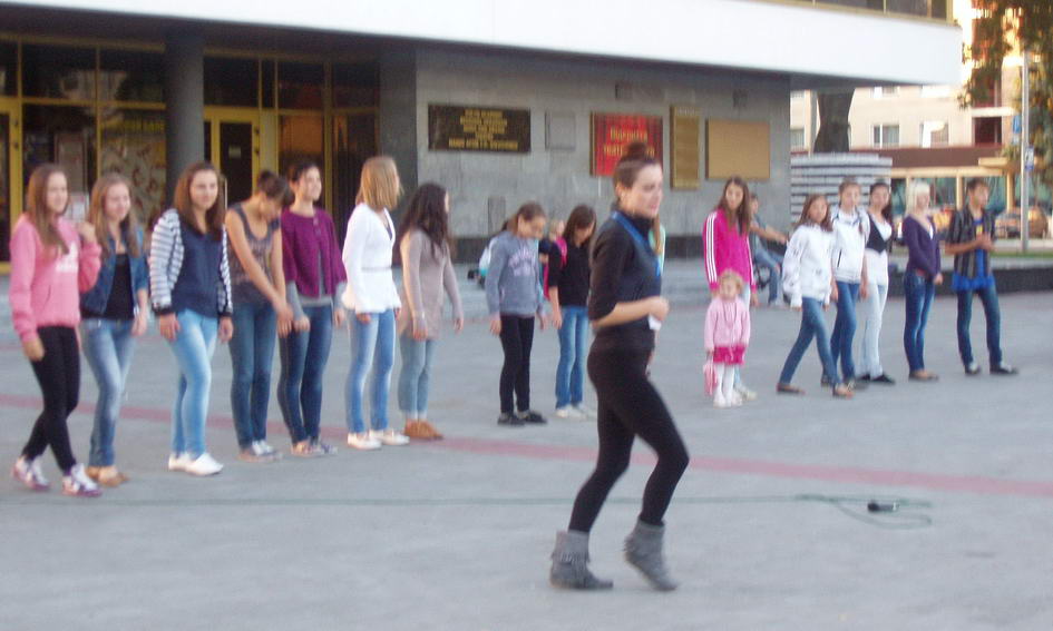 На перше заняття біля облмуздрамтеатру зібралось зо два десятки молоді 12-17 років. Хореограф чесно зізналась, що очікувала трохи старшої публіки, але як професіонал взялася працювати з тими, хто зголосився. Адже головне – не вік, а бажання навчитися танцювати в колективі, втілити свою мрію та отримати задоволення від танцю. Учні виявились неповороткими, але хореограф демонструвала дива витримки, наголошуючи, що будуть повторювати рухи і мільйон разів, аби виконувати все правильно і синхронно.