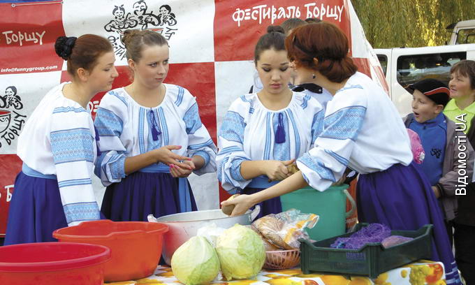 На фото: Складові борщу дівчата нарізали на очах у лучан