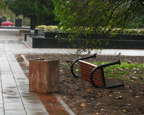 На Меморіалі Слави вандали перевернули лавки та «осідлали» ними смітники