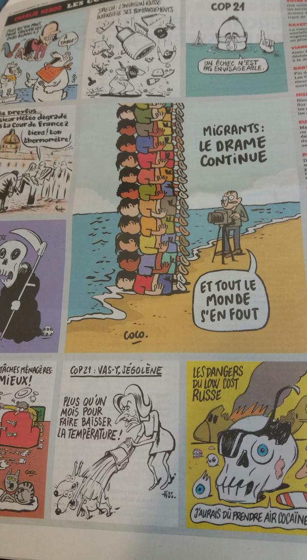 Крім того, Жерар Біар підкреслив, що зображення про катастрофу А321 не мають на меті висміяти жертв або факт трагедії та не є карикатурами. «На цих малюнках немає карикатурних персонажів. Ми просто коментуємо подія і показуємо свій погляд на нього. І ми робимо це щотижня», — сказав він.