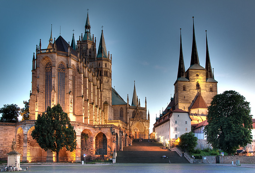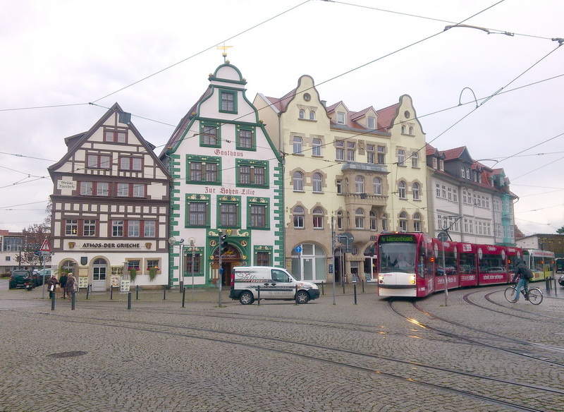 Ерфурт, який знаходиться в самому центрі Німеччини, на землі Тюрингія, приваблює туристів із усієї Європи. І не дивно. Рідко де побачиш таку архітектуру. Кожна будівля — це витвір мистецтва. Місту пощастило. Якщо більшість населених пунктів були зруйновані вщент під час Другої світової війни, то його лиха доля обійшла стороною. І сьогодні милують око будинки Лютеранської епохи і навіть більш давні — 12–13 століть. Тут настільки шанобливо ставляться до історії, що всіма силами намагаються зберегти навіть ті будівлі, які перейшли вже давно в статус аварійних. Їх підтримують як ззовні, так і всередині. Частина з них стоїть порожньою, частину використовують під музеї.