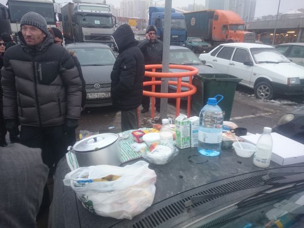 У той же час Павло Аксьонов написав, що водії повідомили йому про те, що «МКАД перекрила поліція». Співробітники ГІБДД не пропускають далекобійників далі Ленінградського шосе, уточнює у своєму акаунті Twitter муніципальний депутат району Сокіл Антон Морозов. Пізніше Аксьонов уточнив, що за вільними смугах МКАД убік Ленінградського шосе проїхали «два або три автозаки».