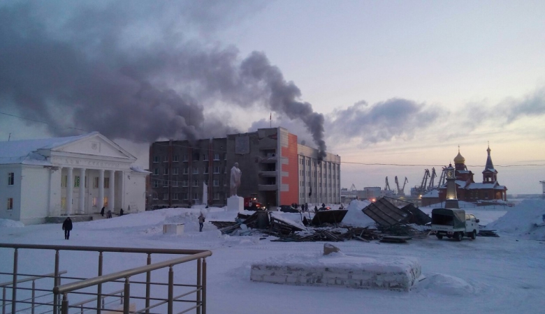 У місті Дудинка в Красноярському краї загорілася будівля міської адміністрації, повідомляє NewsRu.