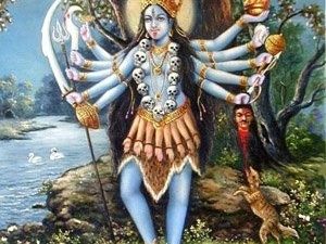 Богиня Калі (Чорна Богиня) – одне з імен дружини бога Шиви, одного із трьох верховних богів індуїзму. Калі – прояв грізних сил. Її зображують у вигляді молодої оголеної жінки в спідниці з відрізаних людських рук і з намистом з відрізаних людських голів. Волосся Калі розпущене, з язика капає кров, у її руках різна зброя.