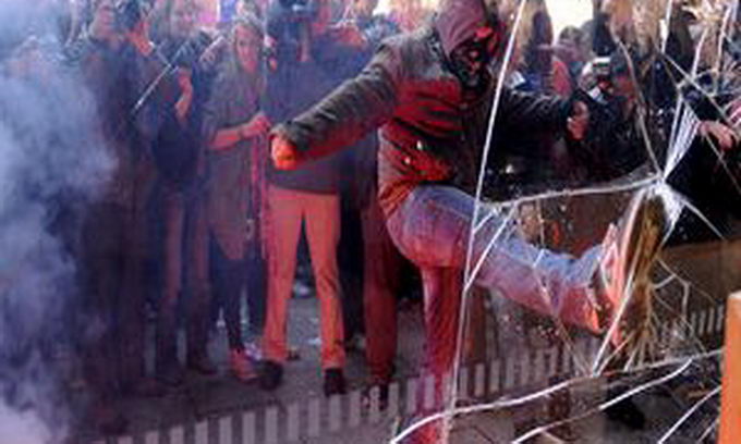 У повідомленні поліцейського управління відзначається, що більша частина протестантів поводиться мирно, і лише невелика група молодих людей взяла участь у погромі, що відбувся в штабі консервативної партії.