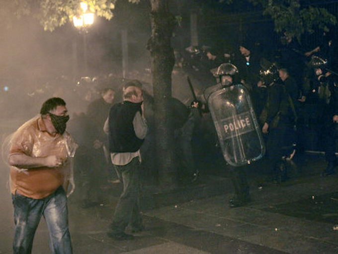 Сьогодні вночі грузинська поліція розігнала демонстрантів, що зібралися в Тбілісі на площі перед парламентом, щоб перешкодити проведенню параду на честь Дня незалежності, який має відбутися 26 травня. Поліція застосувала водомети і сльозогінний газ, а також стріляла по демонстрантах гумовими кулями.