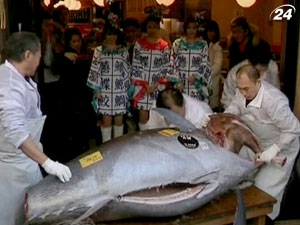 Вартість велетенської риби, виловленого біля берегів провінції Аоморі, склала більше 700 тисяч доларів. Перші у цьому році торги пройшли на найбільшому у світі рибному ринку у Токіо.