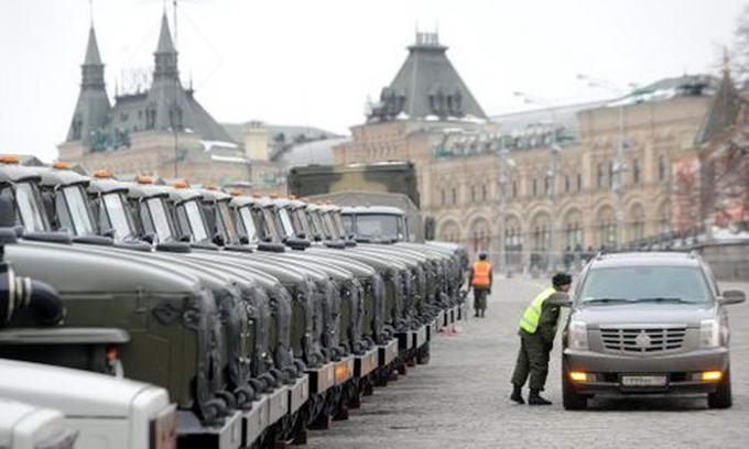До площі стягнуті близько 120 автобусів і вантажівок поліції й внутрішніх військ, поліцейські в бронежилетах і шоломах чергують на прилеглих станціях метро.