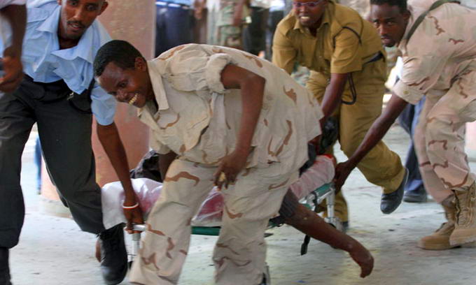 Теракт відбувся під час торжества з нагоди першої річниці сомалійського телебачення. На заході був присутній і прем’єр-міністр Сомалі Абдівелі Мохаммед Алі. Він повідомив, що вибух скоїла жінка-смертниця в момент його виступу, і висловив думку, що теракт влаштувало ісламістське угруповання «Аль-Шабааб».
