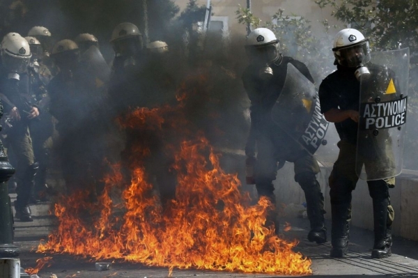 Десятки тисяч людей брали участь в четвер у демонстраціях протесту проти політики уряду щодо скорочення витрат в обмін на кредити ЄС і МВФ. Групи молоді, що відокремилися від мирних демонстрацій, закидали поліцію камінням та пляшками зі запалювальною сумішшю, правоохоронці відповідали сльозоточивим газом.