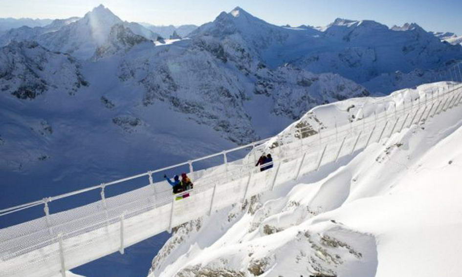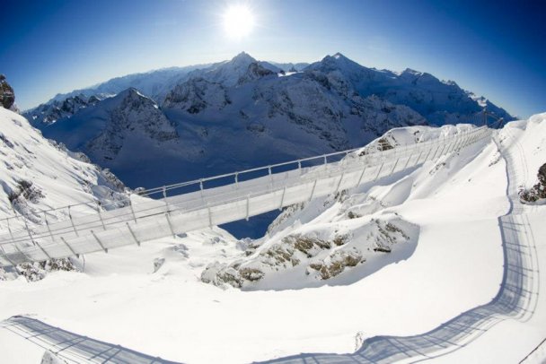 У швейцарських Альпах побудували підвісний міст Titlis Cliff Walk, який визнаний найстрашнішим мостом у світі. Конструкція завдовжки понад 100 метрів і шириною приблизно в метр закріплена на висоті в 500 метрів над одним із альпійських льодовиків.