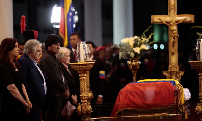 Лідери латиноамериканських країн віддають останню шану пам'яті президенту Венесуели Уго Чавесу. Труна з його тілом виставлена в залі військової академії. Там він залишиться до п'ятниці, коли заплановано похорон президента, який так і не встиг прийняти четверту присягу.