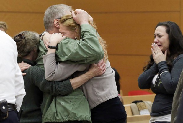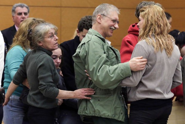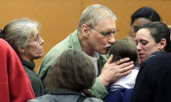 На фото: Девід Рантьє в колі щасливих рідних і близьких, звільнений у залі суду відразу після оголошення вироку.