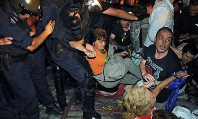 Деякі демонстранти вчинили опір, внаслідок чого поліції довелося застосувати силу. У відповідь у бік правоохоронців полетіли камені і пляшки.