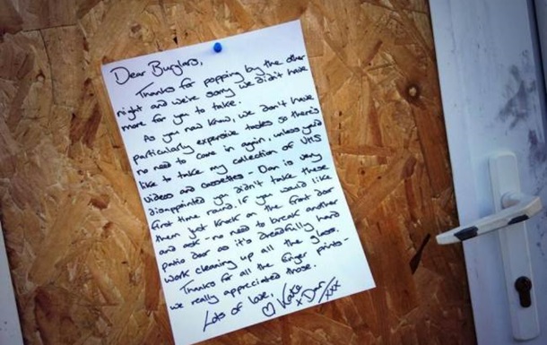 Британка залишила грабіжникам записку з перепрошеннями і подяками.