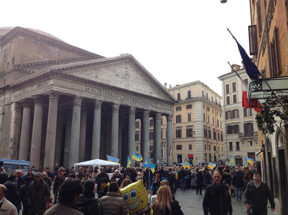 Українці Італії зібралися у різних містах країни. Зокрема, Українці Рима привертали увагу журналістів та всіх присутніх плакатами італійською мовою. Мітинги на підтримку Майдану відбулися також в Генуї, Павії, Мілані, Брешії та Валенсії.