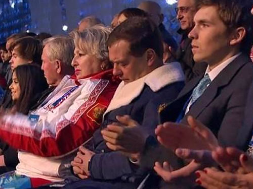 Тим часом блогосфера обговорює стоп-кадр трансляції церемонії відкриття 22-х Зимових Олімпійських ігор, який показав прем'єр-міністра Росії Дмитра Медведєва.