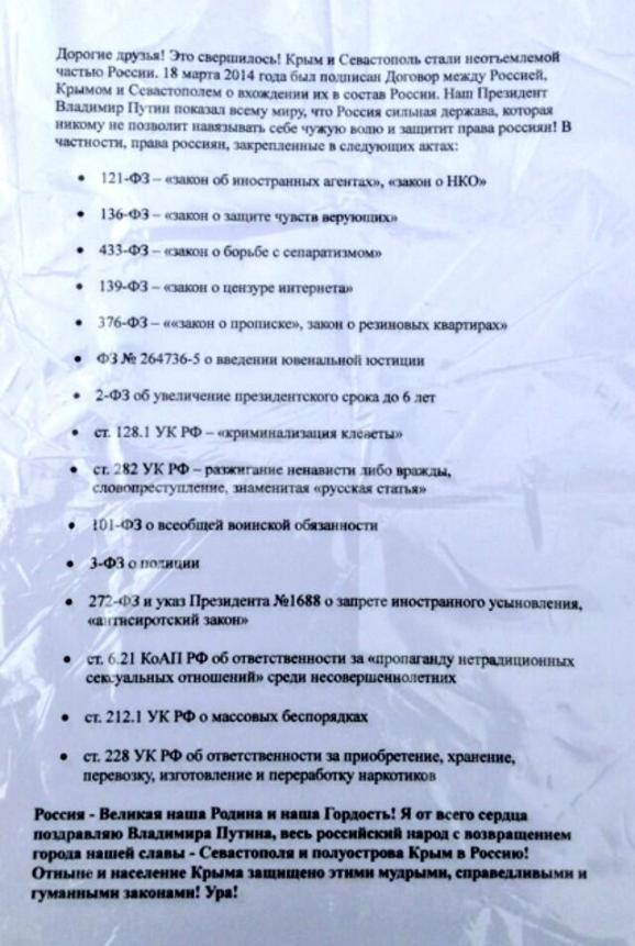 Крім того, активісти на площі роздавали і листівки, які перераховують ці закони.