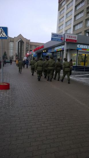 У білоруських ЗМІ повідомляють про появу у Гомелі так званих «зелених чоловічків» у військовій формі без розпізнавальних знаків.